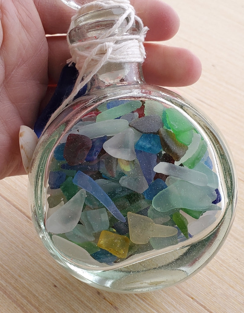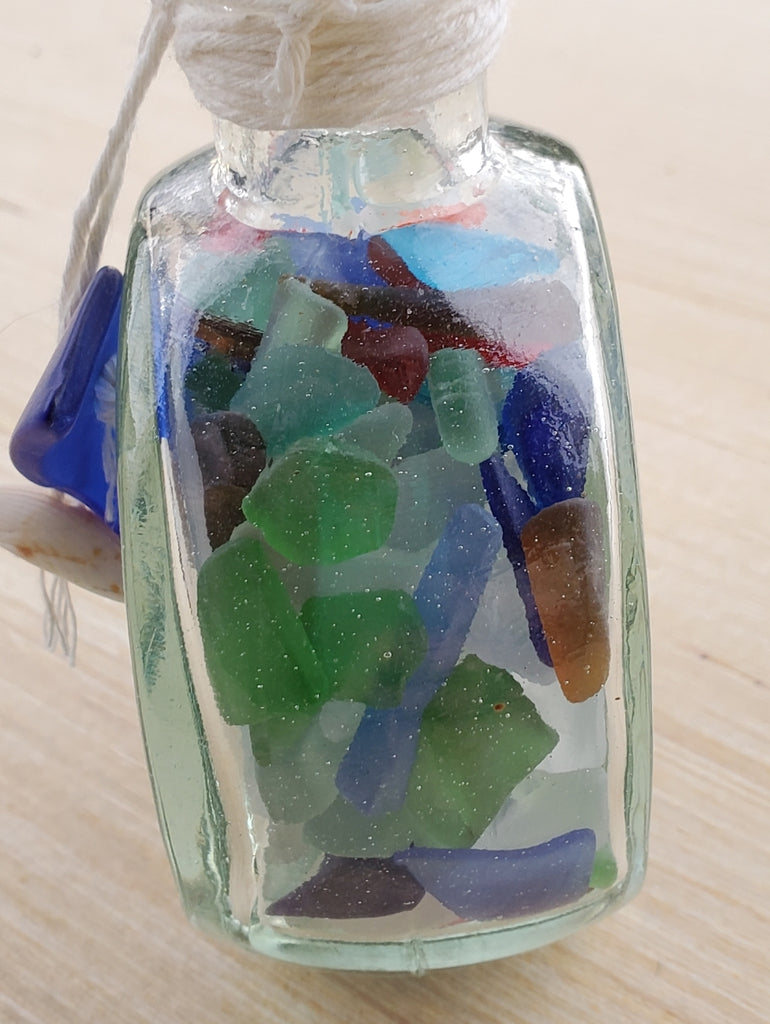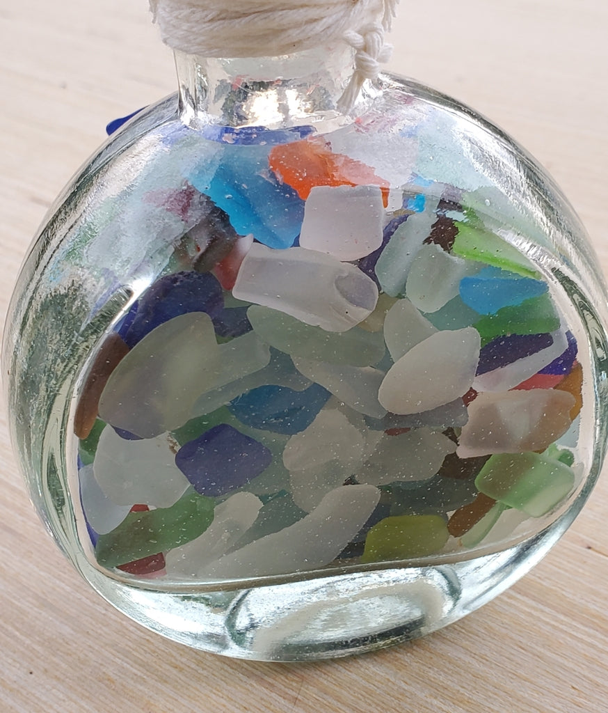 SET OF 2 BOTTLES OF SEA GLASS AS SHOWN